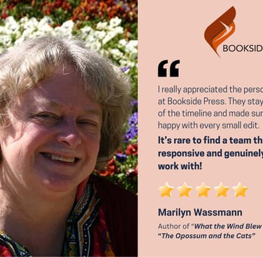 "I really appreciated the personal touch at Bookside Press. They stayed on top of the timeline and made sure I was happy with every small edit. It’s rare to find a team that is this responsive and genuinely easy to work with!"