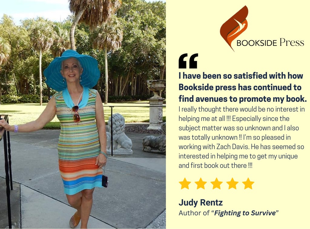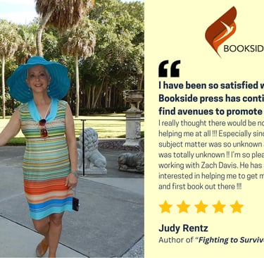 "I have been so satisfied with how Bookside press has continued to find avenues to promote my book. I really thought there would be no interest in helping me at all !!! Especially since the subject matter was so unknown and I also was totally unknown !! I’m so pleased in working with Zach Davis. He has seemed so interested in helping me to get my unique and first book out there !!!"