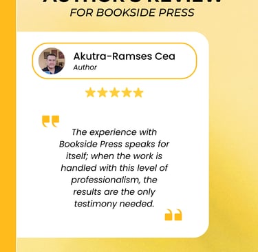As someone who tracks author experiences closely, seeing a 5-star rating from Akutra-Ramses Atenosis Cea is a strong green flag. It tells me that Bookside Press is maintaining a standard of quality that satisfies even the most discerning creators. When an author is happy, the book journey is inherently smoother.